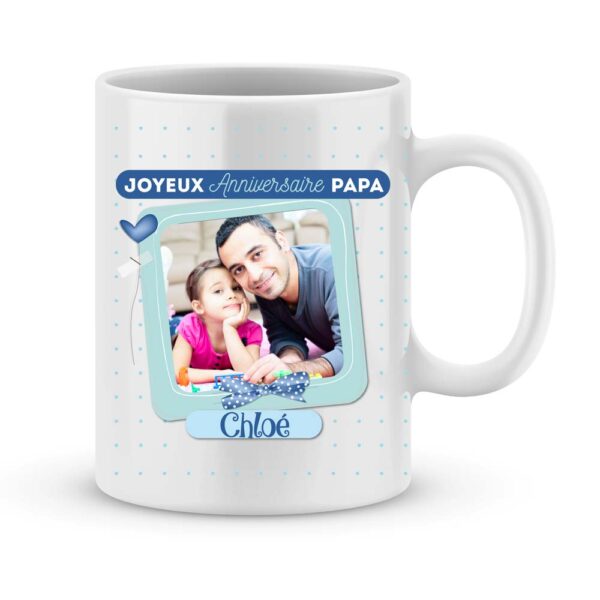 Cadeau anniversaire Papa avec photo et 3 prénoms : intemporel ; le mug personnalisé reste un cadeau ultra tendance et très original. Faites la différence : le mug personnalisé est unique et il est à votre image.