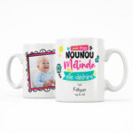 Cadeau nounou photo. Mug ma nounou elle déchire avec prénoms. Le mug personnalisé : c’est « LE » cadeau unique et original par excellence. Mets de la bonne humeur dans le café de ta nounou préférée ; elle va adorer… Tu peux accompagner cette tasse d’un beau dessin…