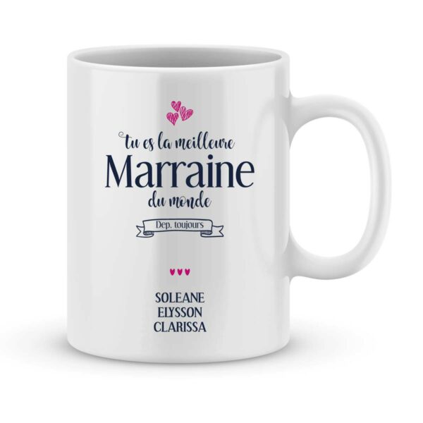 Mug personnalisé avec un prénom meilleure Marraine du monde : intemporel ; le mug personnalisé reste un cadeau ultra tendance et très original. Faites la différence : le mug personnalisé est unique et il est à votre image.